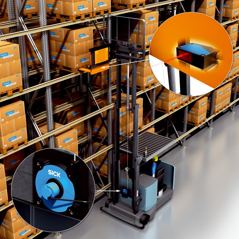 西克高架托盘搬运传感器:窄通道叉车作业的“精准安全助手”